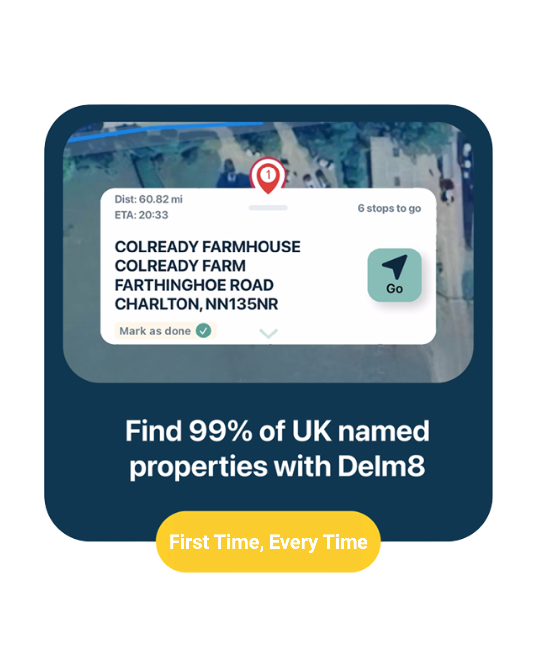 Standard navigation tools rely on postcodes but postcodes only get you close. Delm8’s UK Address Finder takes accuracy to the next level, guiding drivers directly to the exact doorstep, not just the postcode centre. From rural farms and named cottages to new builds, business parks, and other hard-to-locate properties, Delm8 pinpoints every address with precision.